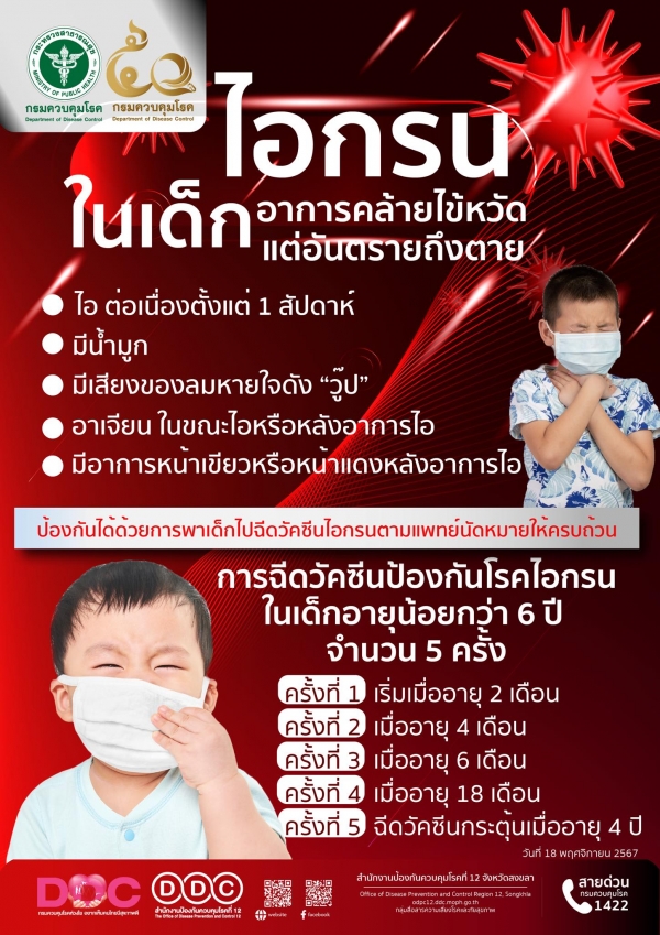 โรคไอกรนในเด็ก อาการคล้ายกับไข้หวัด แต่อันตรายถึงเสียชีวิต ป้องกันได้ด้วยการฉีดวัคซีน