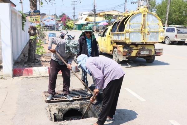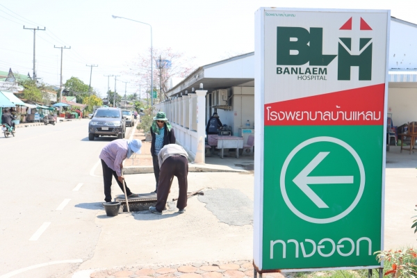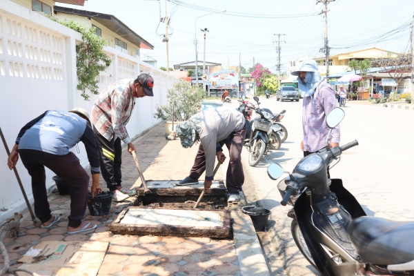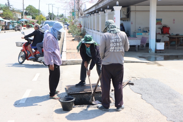 ลงพื้นที่ตักขี้เลนในท่อระบายน้ำหน้าโรงพยาบาลบ้านแหลม