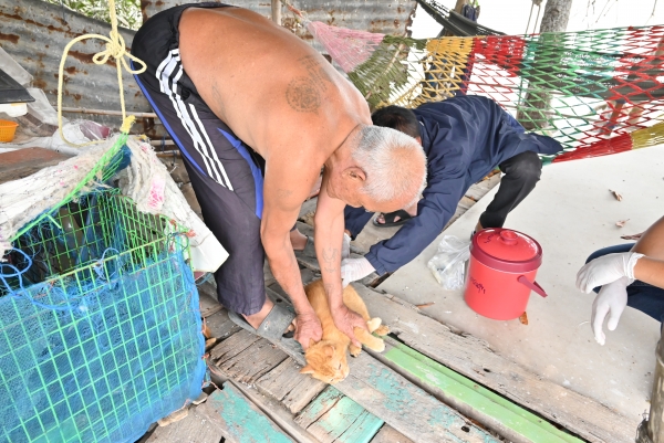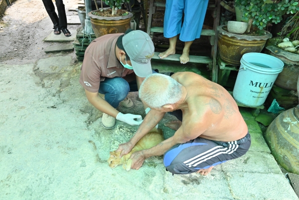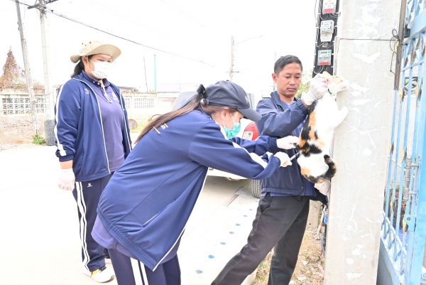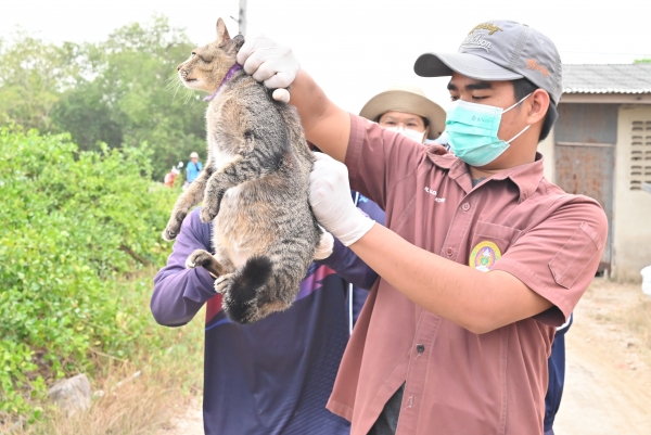 ฉีดวัคซีนป้องกันโรคพิษสุนัขบ้าให้แก่สุนัขและแมว