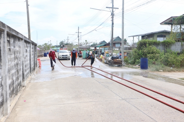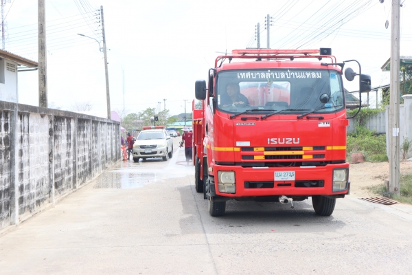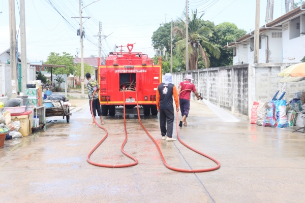 ลงพื้นที่ล้างถนนลดปัญหาฝุ่น pm 2.5 บริเวณถนนหลังโรงเรียนวัดในกลาง