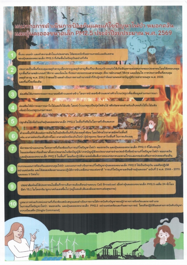 ดำเนินการป้องกันและแก้ไขปัญหาไฟป่า หมอกควันและฝุ่นละอองขนาดเล็ก PM 2.5