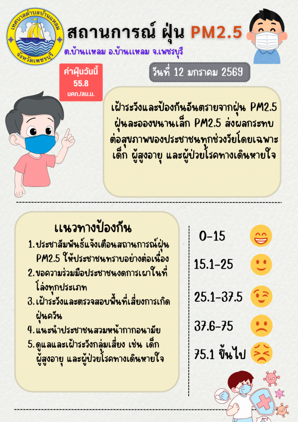 แจ้งเตือนค่าฝุ่น PM 2.5(12/01/69)
