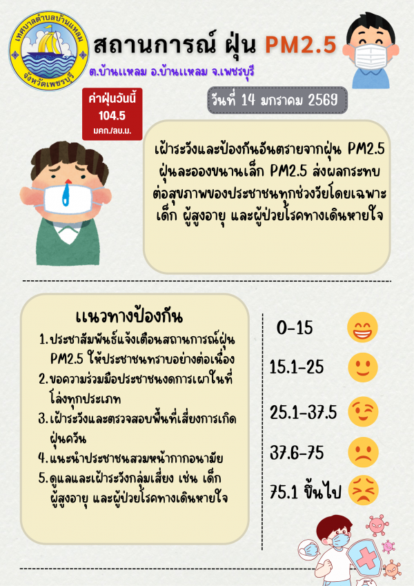 แจ้งเตือนค่าฝุ่น PM 2.5 (14/01/69)