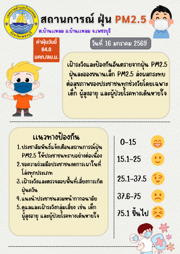 แจ้งเตือนค่าฝุ่น PM 2.5(16/01/69)