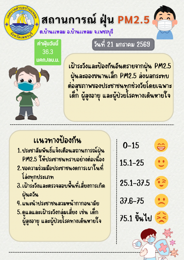 แจ้งเตือนค่าฝุ่น PM 2.5(21/01/69)