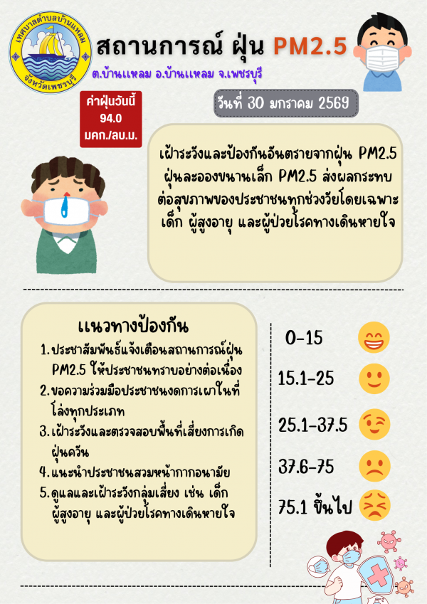 แจ้งเตือนค่าฝุ่น PM 2.5(30/01/69)