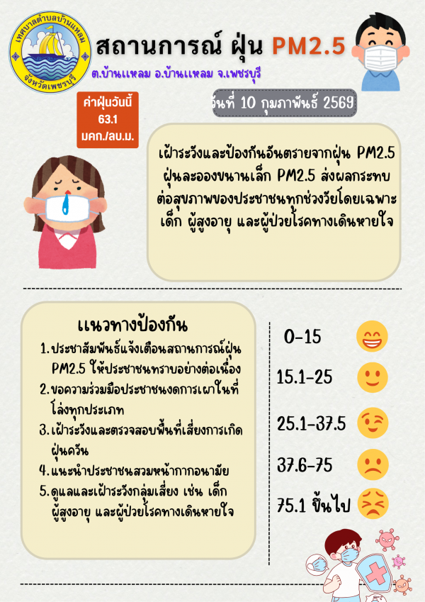 แจ้งเตือนค่าฝุ่น PM 2.5 (10/02/69)