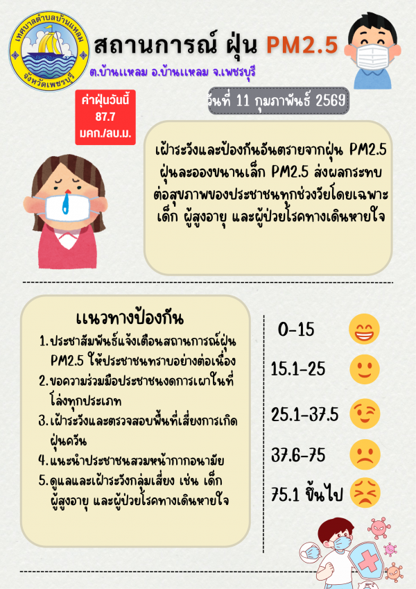 แจ้งเตือนค่าฝุ่น PM 2.5 (11/02/69)