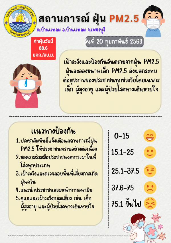 แจ้งเตือนค่าฝุ่น PM 2.5(20/02/69)