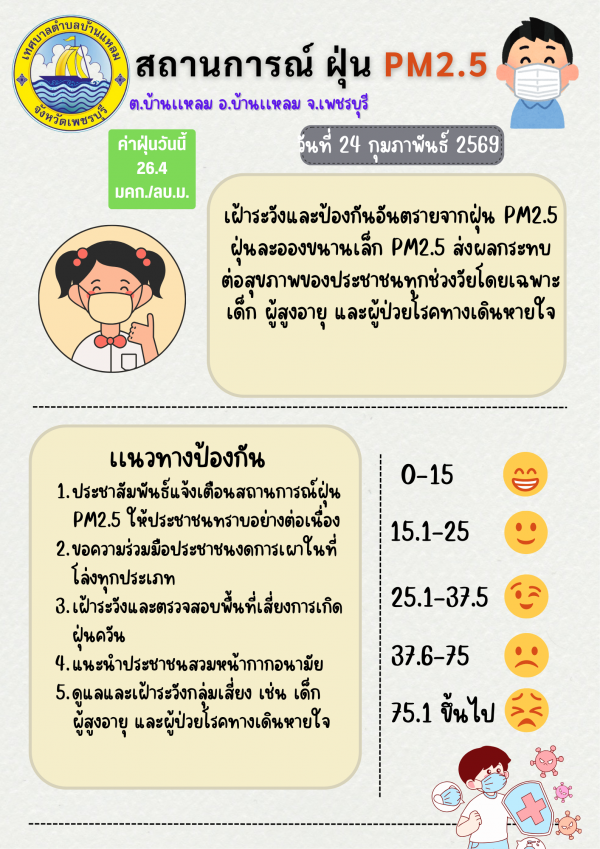 แจ้งเตือนค่าฝุ่น PM 2.5(24/02/2569)