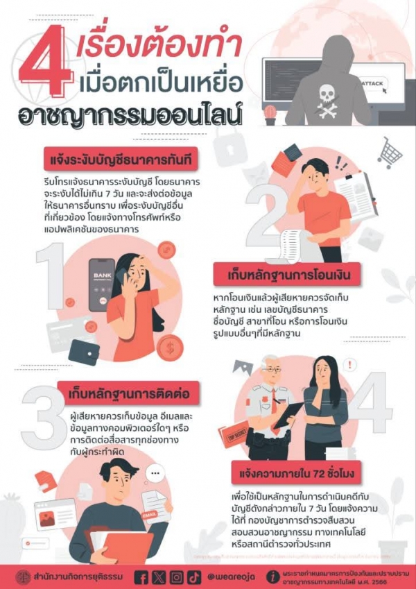 แนวทางการป้องกันอาชญากรรมไซเบอร์ การพนันทุกรูปเเบบเเละการหลอกลวงประชาชน ไม่เชื่อ ไม่รีบ ไม่โอน