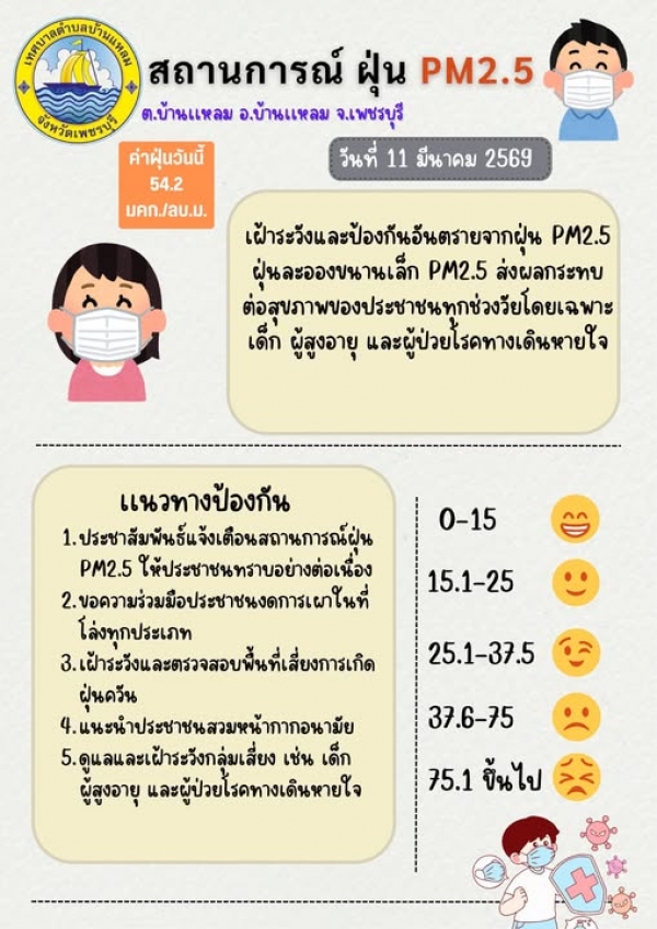 แจ้งเตือนค่าฝุ่น PM 2.5 (11/03/2569)